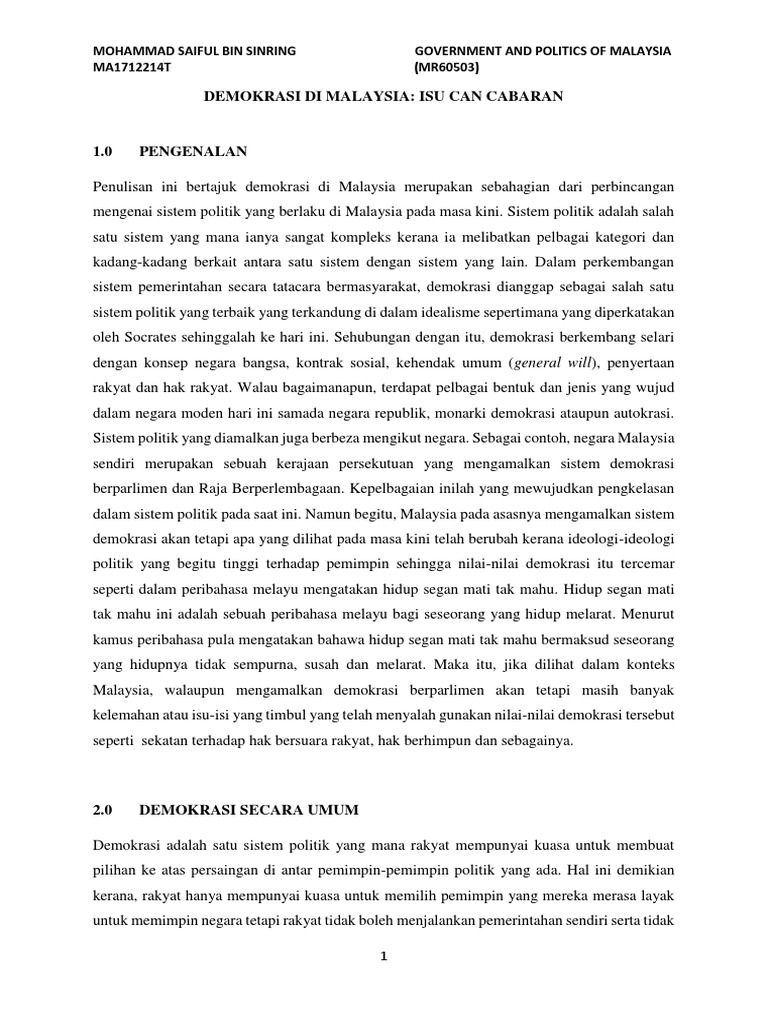 Demokrasi Di Malaysia Pdf